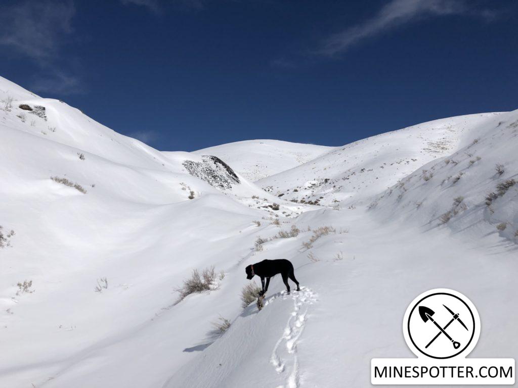 This was my second attempt to get to the Arizona Group Mine. I was a little better prepared with a plan and some snow shoes this time. I reached the mine by traveling up the valley rather than taking the mining road to avoid avalanche danger. There is a lot of trash near this mine. An old busted up trailer and many blue barrels labelled corrosive can be found along the way. I made my way back up to the mining road and into the mine site. There is a collapsed mine opening on the way and some very large tailing piles. I’ll likely visit again in the summer.