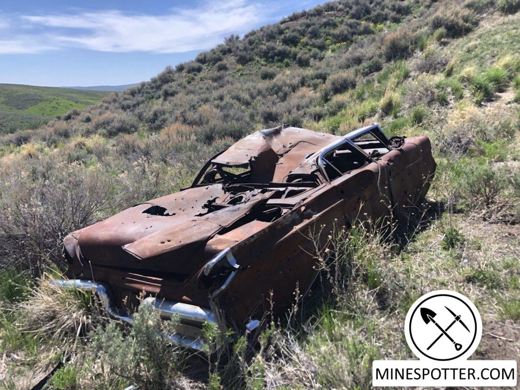 The Westlake North Prospect is a lead, zinc and silver mine outside of Hailey. There are visible tailing piles and metal and wood artifacts. There are some standing structures and some old cars in the area.