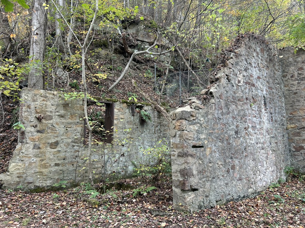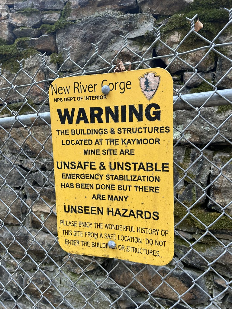 The Kaymoor Mine was a coal mine and townsite located outside of Fayetteville, WV. It ran from 1901 to 1951. It’s located in the New River Gorge National Park and Preserve. You’ll traverse a trail from the well-marked trailhead down to the mine entrance, powder house, former office and lamp house.