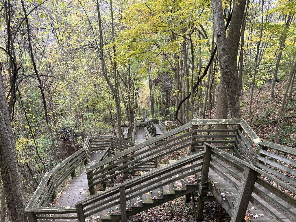 Descending down to the Kaymoor Bottom requires a bit of effort. The trail drops over 1000 feet in elevation and has over 800 steps. The stairs are very well maintained, but be prepared for a workout on the way back up.