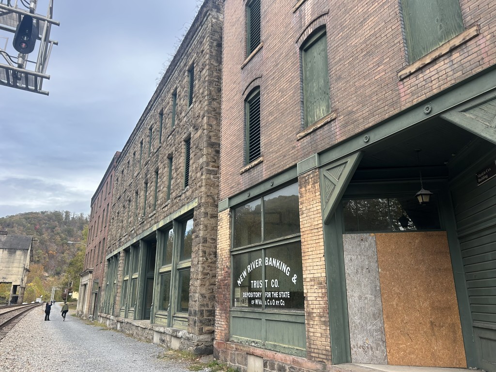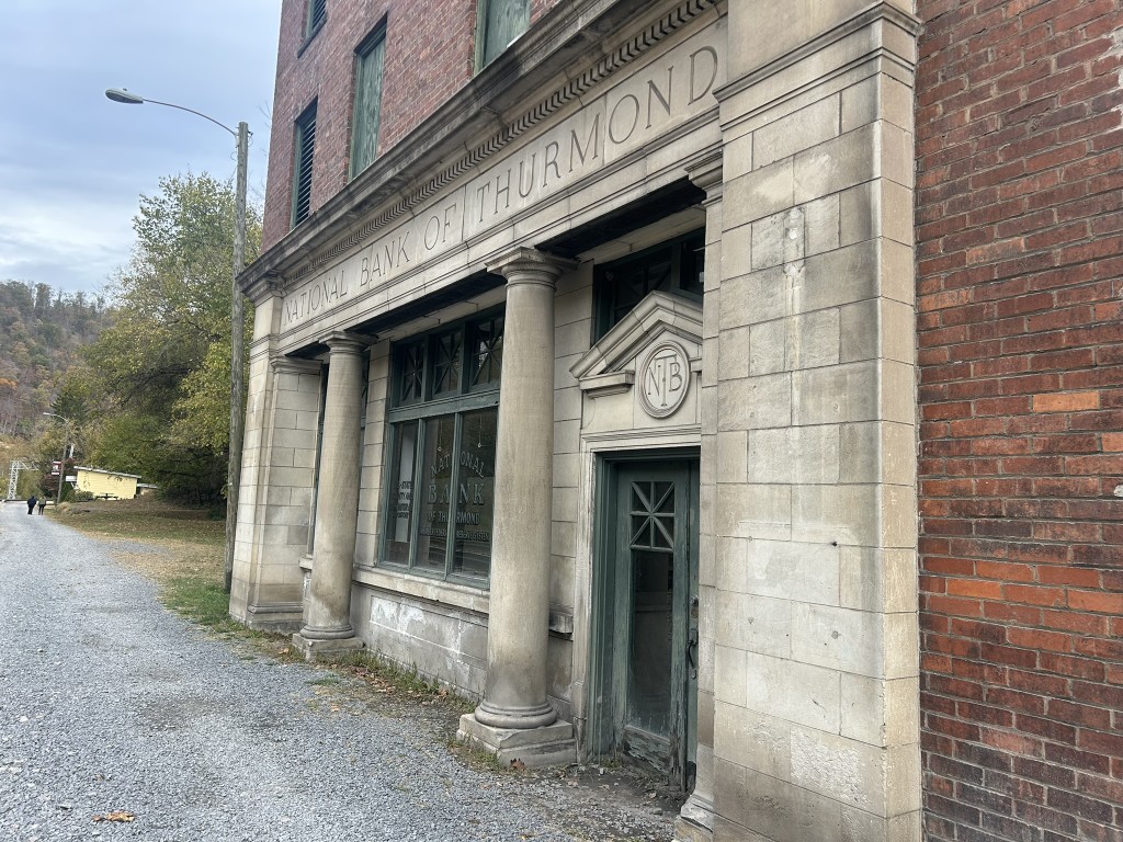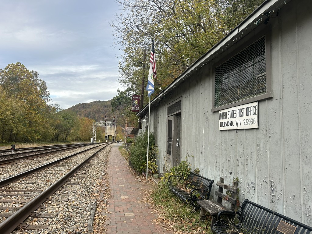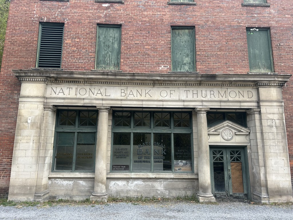 Thurmond, WV is a historic coal town located in the New River Gorge National Park and Preserve. It was once a bustling railroad and coal mining town but has since become a ghost town with several preserved buildings and a small museum. It technically has a population of 4 people that are looking to preserve the town’s history. The main street is lined with old buildings that once housed businesses, a hotel, and a train depot. Above the main street, you can see the remains of many old residences.