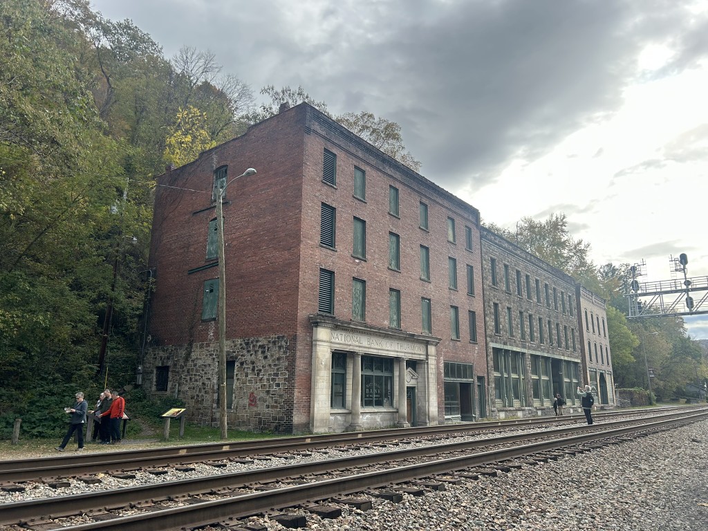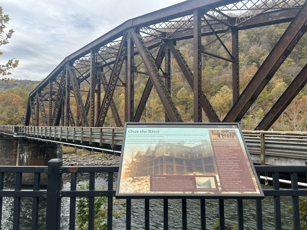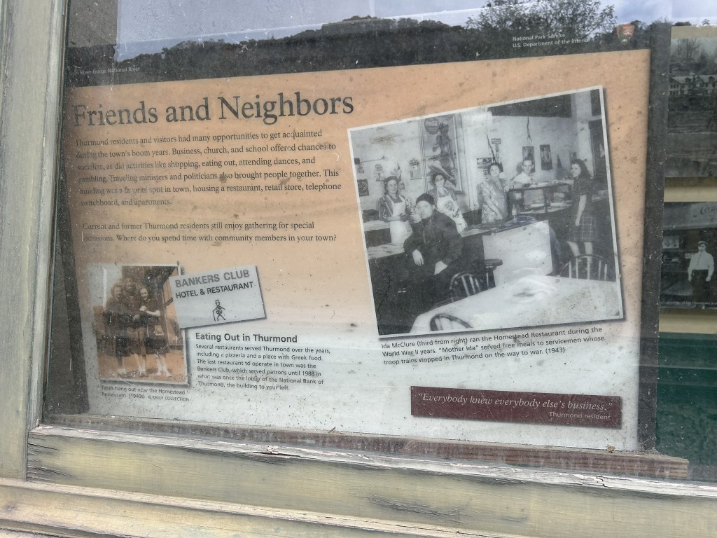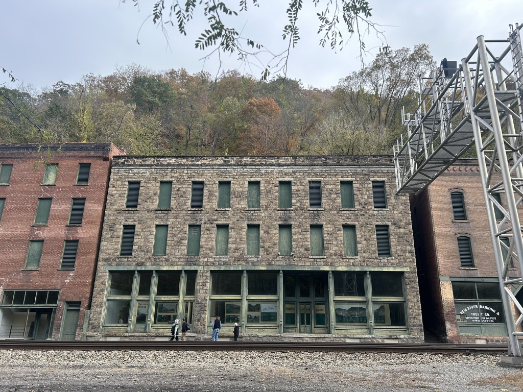 Thurmond, WV is a historic coal town located in the New River Gorge National Park and Preserve. It was once a bustling railroad and coal mining town but has since become a ghost town with several preserved buildings and a small museum. It technically has a population of 4 people that are looking to preserve the town’s history. The main street is lined with old buildings that once housed businesses, a hotel, and a train depot. Above the main street, you can see the remains of many old residences.